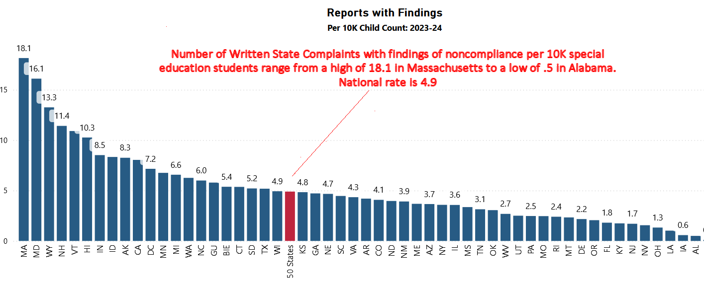 STATE COMPLAINTS FILED BY STATE: In order to compare state complaint activity across states, we calculate the number of state complaints filed per 10,000 (10K) special education students in the state.